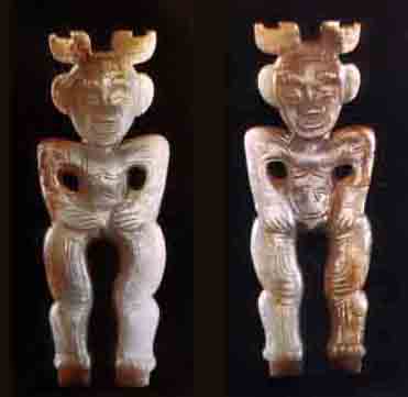 商代發式 商代笄飾男女(河南安陽殷墟婦好墓出土的玉人)。圖中人物似孩童形象,身上刻有清晰的紋樣,可能是早期的文身,頭上插的飾物,可能是一對發笄 ,由此可見商代發笄的安插方法。笄是我國在新時器時代就有的骨笄、蚌笄、玉笄、銅笄等用來固定發髻。周代男女都用笄,笄的用途除固定發髻外,也用來固定冠帽。古時的帽大可以戴住頭部,但冠小只能戴住發髻,所以戴冠必須用雙笄從左右兩側插進發髻加以固定。固定冠帽的笄稱為“衡笄”,周代設“追師”的官來進行管理。衡笄插進冠帽固定于發髻之后,還要從左右兩笄端用絲帶拉到頜下栓住。從周代起,女子年滿十五歲便算成人,可以許嫁,謂之及笄。如果沒有許嫁,到二十歲時也要舉行笄禮,由一個婦人給及齡女子梳一個發髻,插上一支笄,禮后再取下。