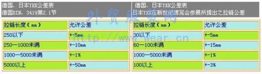 因拉鏈在制作過程中,機械操作的速度所產生之慣性及考慮鏈齒之完整性,拉鏈將出現允許公差,且長度愈長,其允許公差愈大。