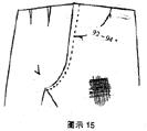 后翹高低的選擇,也要根據體型和習慣的需求來處理,也有的時候會產生這樣的矛盾,腰部與臀部尺寸接近,甚至于相等,后襠坡度與后翹高度,都受到限制,這就需要改變褲于前、后身的分配,加大前身的面積比例,因為凡是肥、胖、壯的人,腹部比較豐滿,確保正常后襠坡度,使之腰、臀平衡。總之,任何形狀的后翹角度,都要掌握住大于90度直角,最佳狀態以92度- 94度為宜(見圖示15),這樣才能確保后襠與腰部的平展。