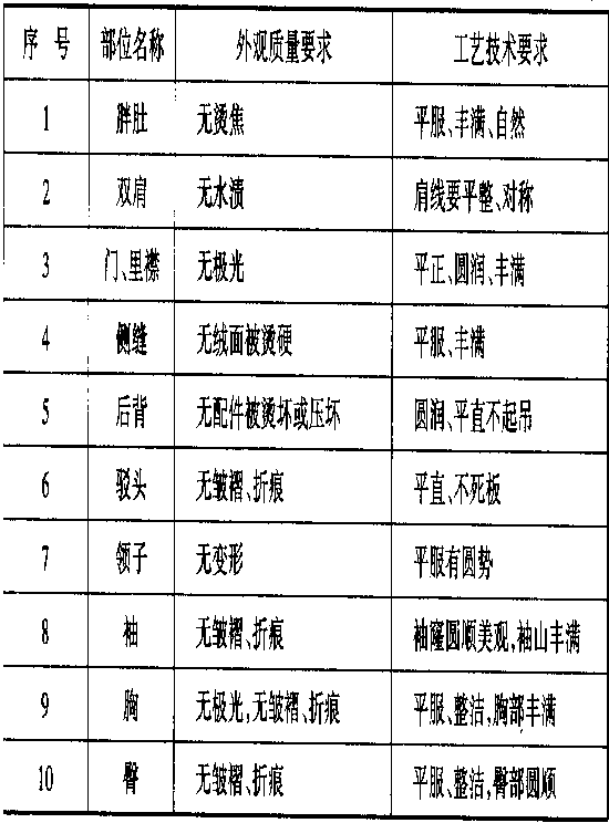 (1)“三好”:整燙溫度掌握好,平挺質量好,外觀折疊好。